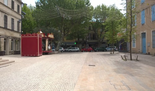 La grande Place du Centre Ville de Châteaurenard sur laquelle donne l’entrée de la Médiathèque.